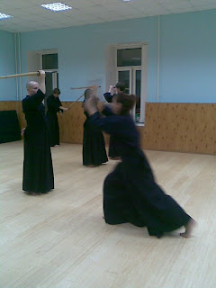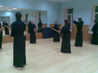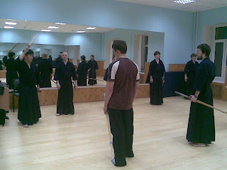 Тренировки ведёт Вячеслав Ан, 3 Дан Кэндо, если кто не знает 🙂